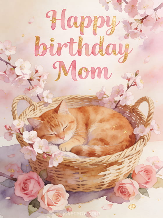 Happy birthday Mom a tender birthday greeting with a sweet ginger cat