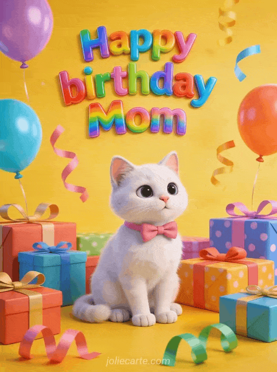 Send a joyful happy birthday greeting to your mom and fill her day with colors and happiness. Celebrate her with this playful card. Discover also a birthday text for Mom, a free happy birthday Mom image or a birthday gif for Mom.