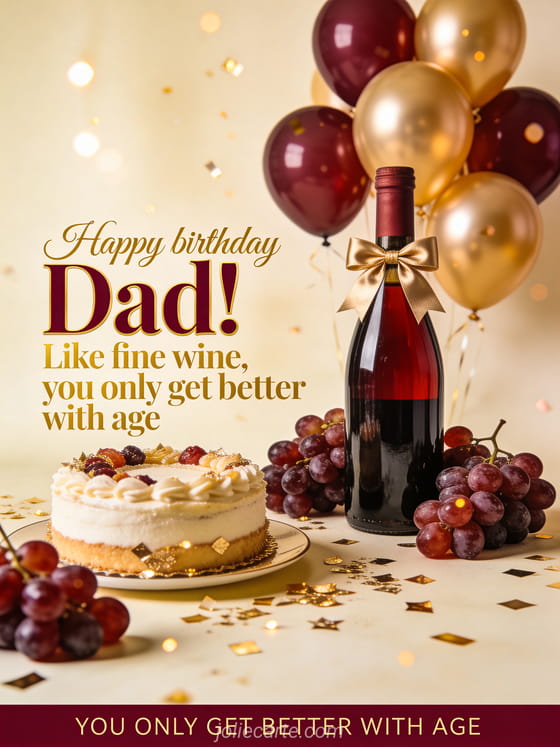 Happy birthday Dad! Like fine wine, you only get better with age a funny and elegant birthday greeting for dad