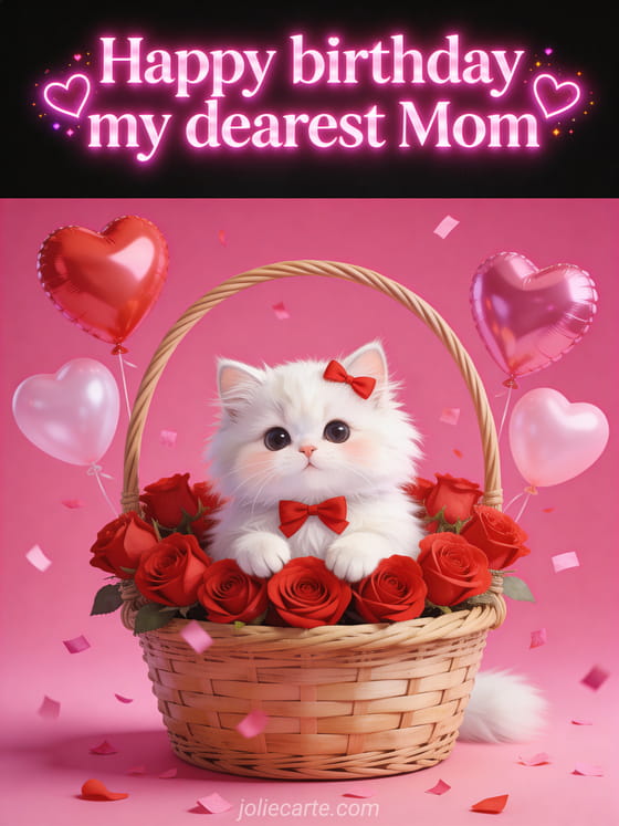 Send a loving happy birthday greeting to your dearest Mom and make her special day unforgettable. Celebrate her with all your heart. Discover also a birthday card for Mom, a birthday SMS for Mom or a happy birthday Mom with flowers.