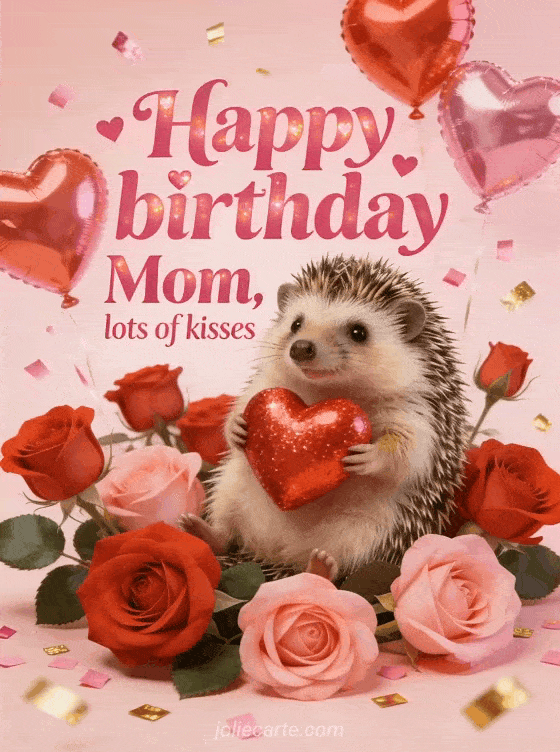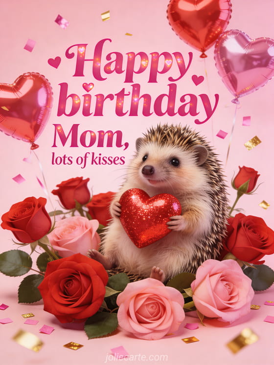 Send a heartfelt happy birthday greeting to your mom with lots of kisses and love. Brighten her special day with this adorable card. Discover also a happy birthday Mom with flowers, a birthday card for Mom or a birthday eCard for Mom.