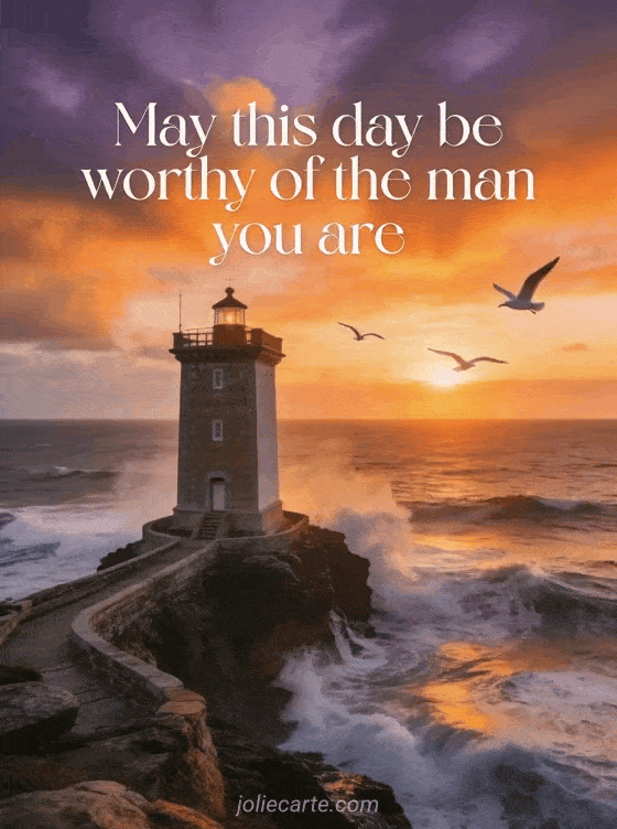 Send a strong and touching birthday message worthy of the man he is. Discover also a happy birthday man card, a free happy birthday gif for him or a birthday ecard for him.