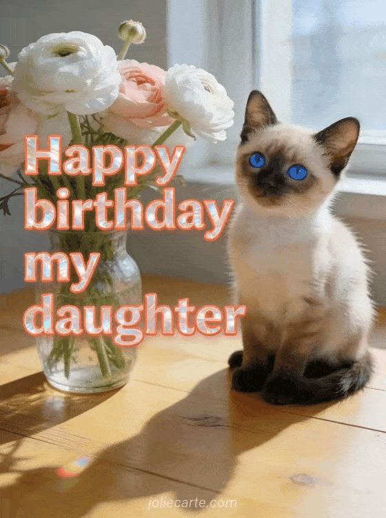 Happy birthday my daughter with Siamese cat a tender and luminous birthday greeting for your daughter