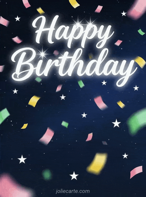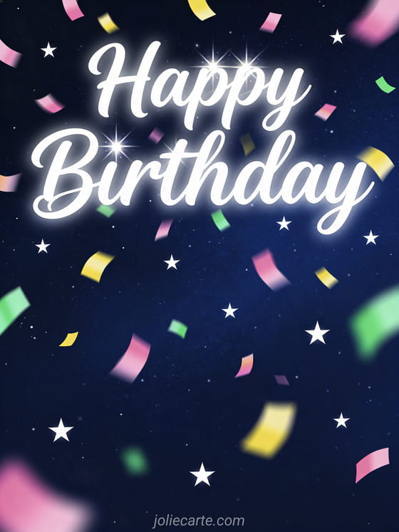 Happy Birthday a festive birthday greeting with confetti and stars