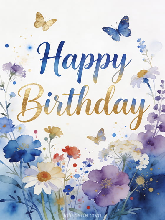 Send a beautiful happy birthday greeting with a delicate watercolor touch. Discover also a happy birthday gif card or a happy birthday photo card.