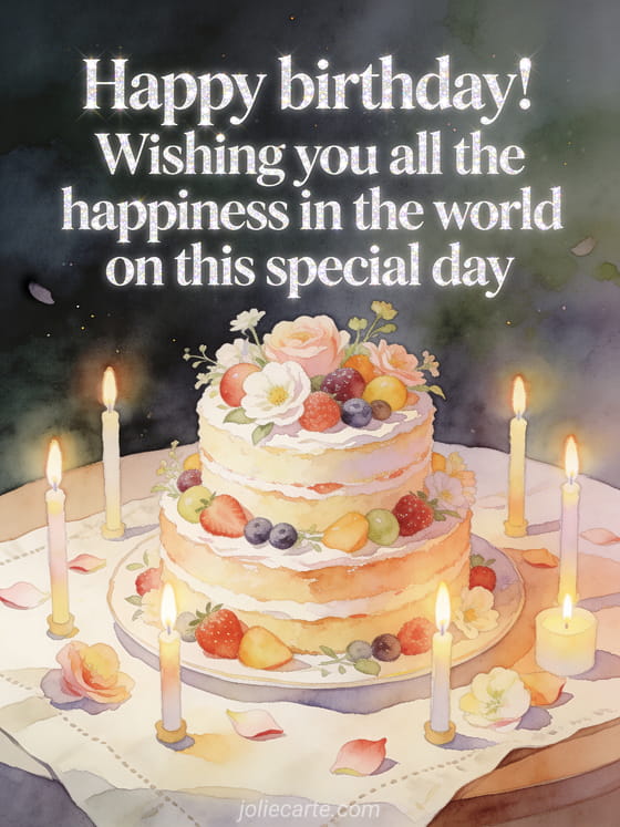 Wish someone all the happiness in the world on their special birthday. Discover also a short birthday text, an inspirational birthday ecard or a minimalist birthday ecard.