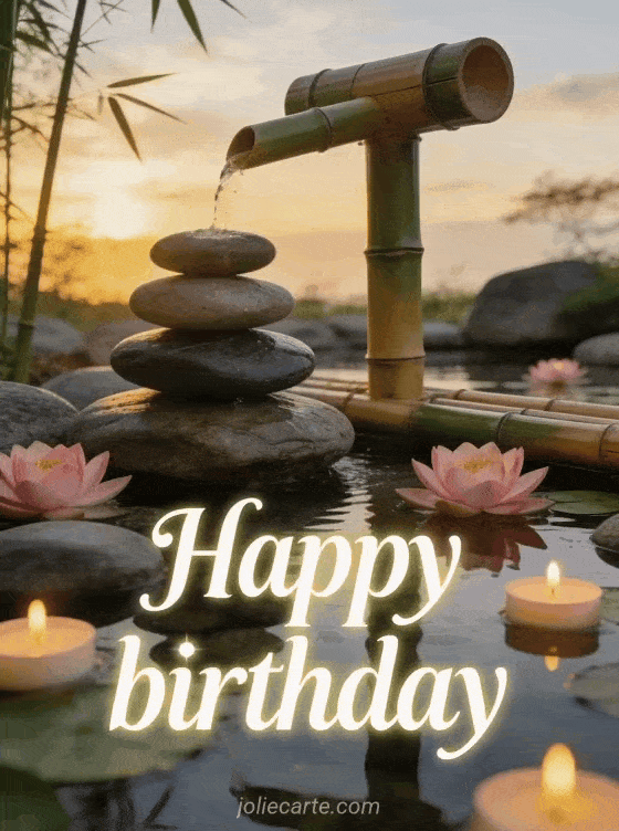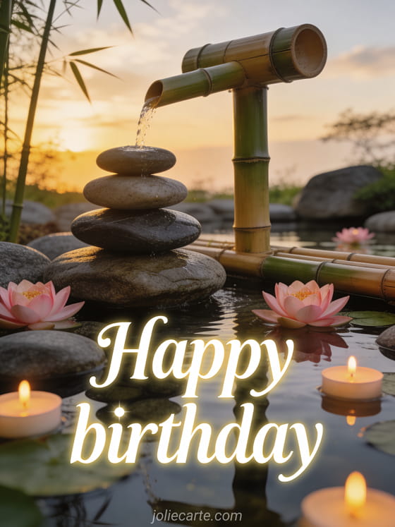 Send a serene happy birthday greeting with this beautiful zen-inspired card. Discover also a happy birthday wish card, a cute dog happy birthday card or a cat happy birthday image.