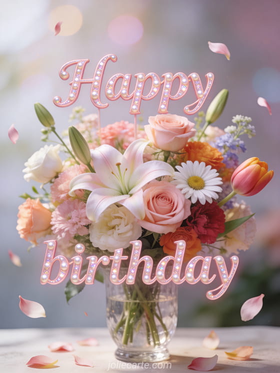 Send a delicate happy birthday greeting with this gorgeous pastel flower bouquet card. Discover also a zen happy birthday card, a happy birthday wish card or a cute dog happy birthday card.