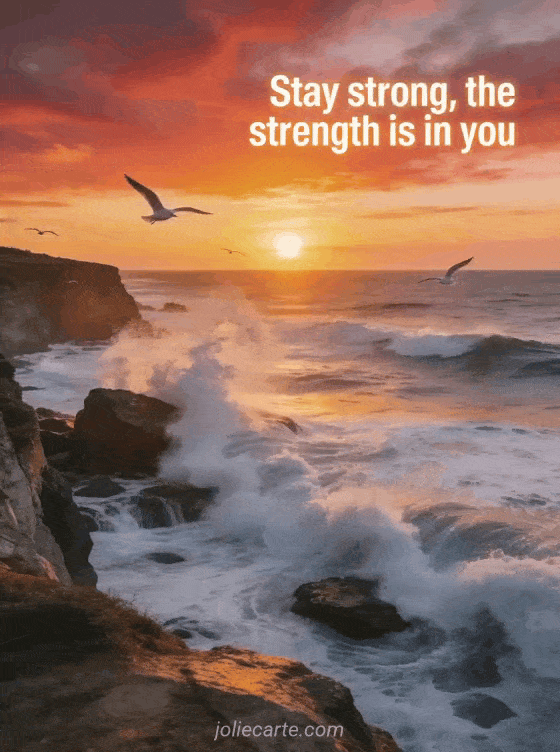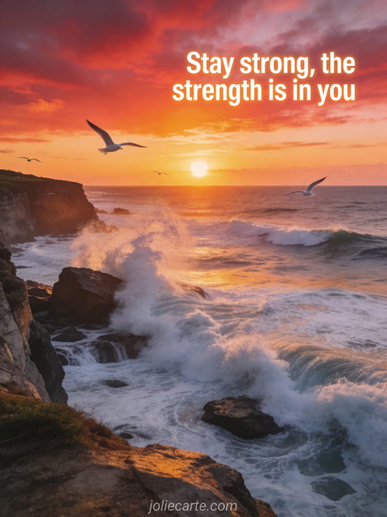 Send this beautiful encouragement card featuring a spectacular ocean sunrise seen from a cliff to uplift someone's spirits. Discover also a stay strong card with hearts or a encouragement card or a warm encouragement greeting.