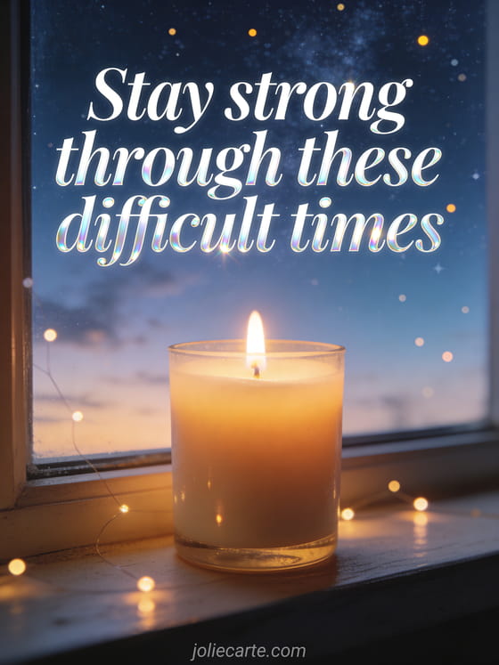 Send this beautiful encouragement card featuring a lit candle on a windowsill with a starry sky to comfort someone through difficult times. Discover also a stay strong encouragement card or a inspiring encouragement card or a encouragement card with hearts.