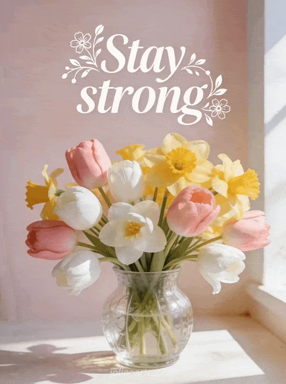 Send a bright stay strong message filled with hope and encouragement. Discover also a stay strong and good luck card, a stay strong with all my heart card or a courage and strength card.
