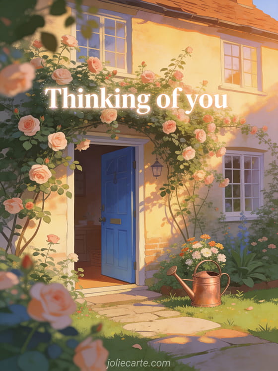 Send a warm thinking of you message to someone dear to your heart. Brighten their day with this cosy and charming free card. Discover also a card I haven't forgotten you thinking of you or a animated thinking of you card.