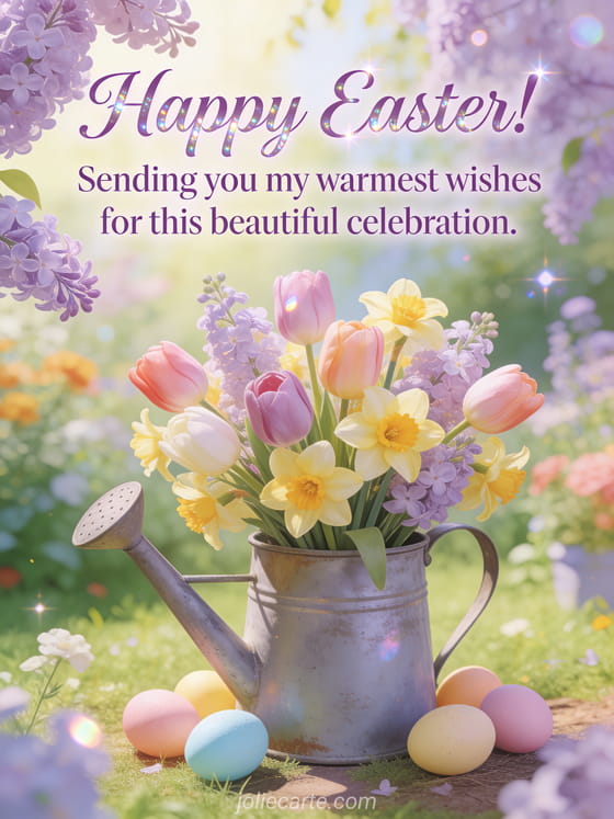 Send your warmest Easter wishes to your loved ones with this beautiful spring card. Discover also an Easter friendship message, an Easter dove card or a Happy Easter greeting.