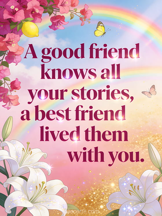 A good friend knows all your stories, a best friend lived them with you. a touching tribute to best friends
