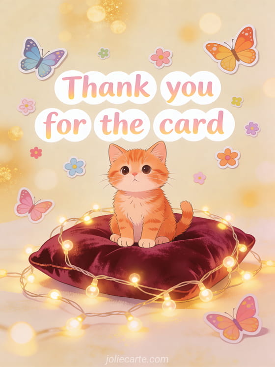 Express your gratitude for a thoughtful card with this adorable kitten greeting card. Discover also a thank you card for a card received, a thank you for your kind attention card or a thank you for your card.