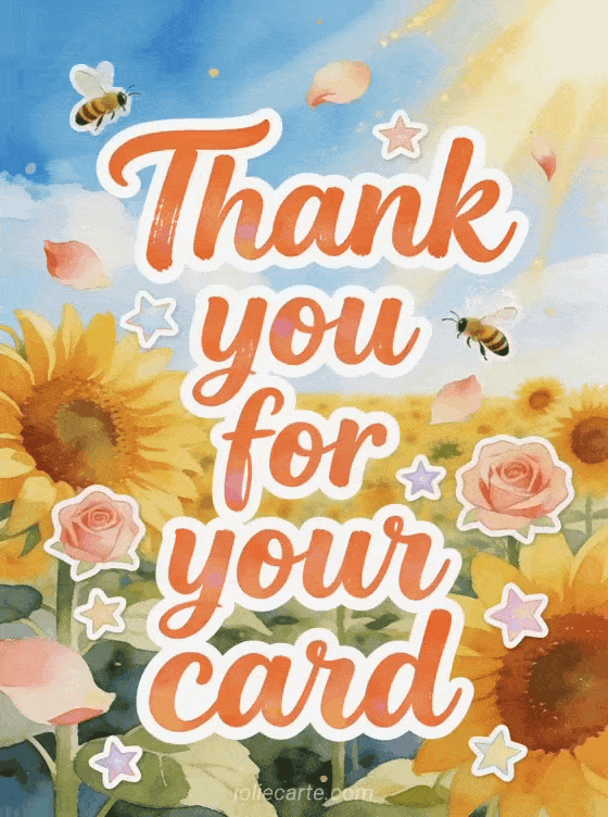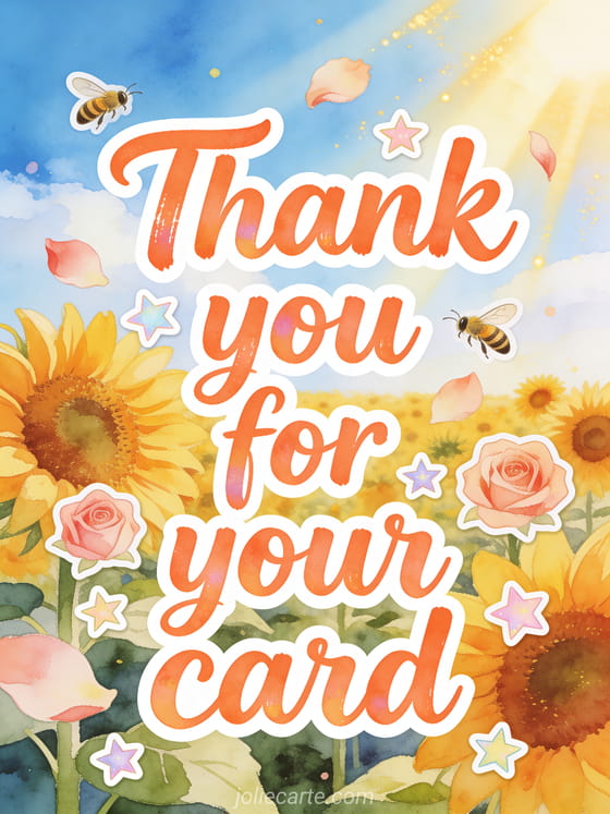 Express your heartfelt gratitude for the card you received with this vibrant and cheerful greeting card. Discover also a thank you for your card or a thank you for the kind thought.