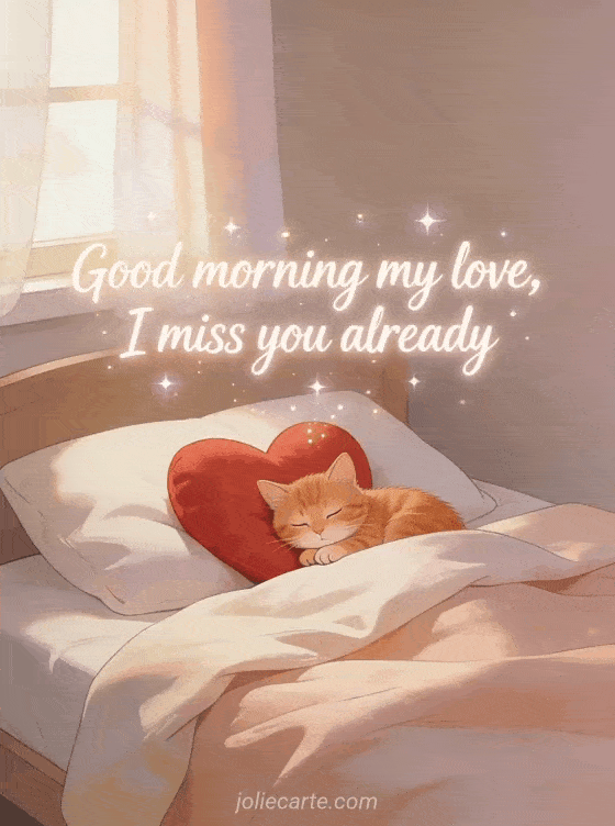 Send a tender good morning to the one you love and let them know you miss them already. For more morning love messages, discover a glamorous good morning image, an animated love good morning or a romantic good morning image.