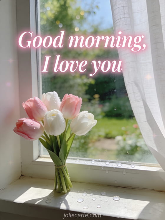 Start the day with a loving good morning and let someone know how much you care. For more romantic morning messages, discover a good morning love SMS, a glamorous good morning image or an animated love good morning.