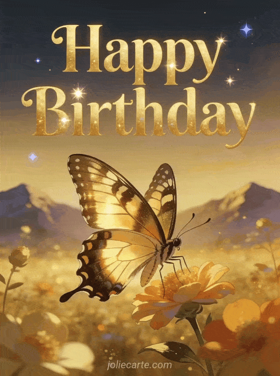 Happy Birthday a majestic butterfly in a golden garden