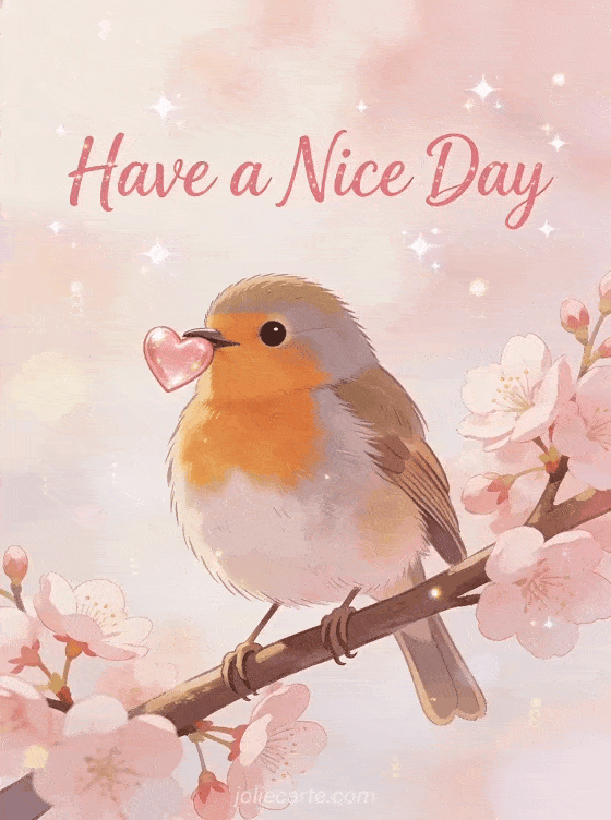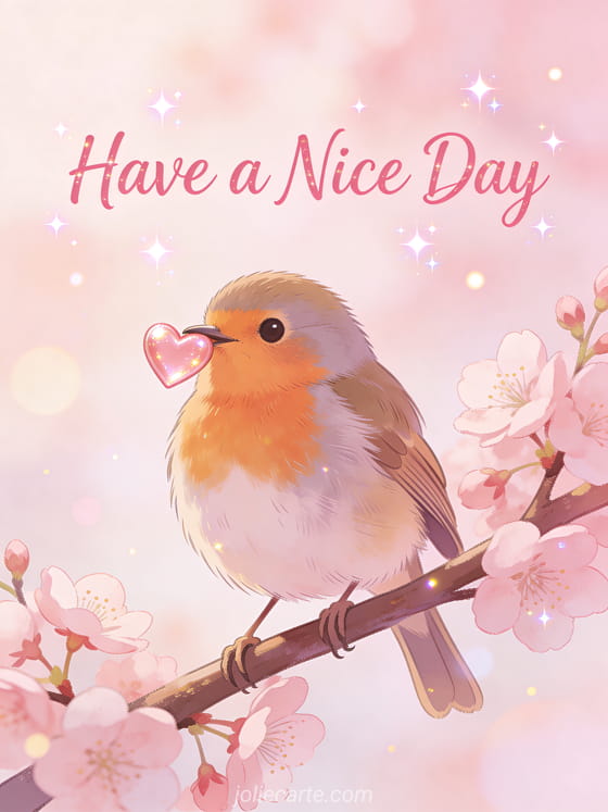 Brighten someone's day with this sweet robin bird and cherry blossom card. Discover also a have a nice day photos card or a wishing you a nice day card.
