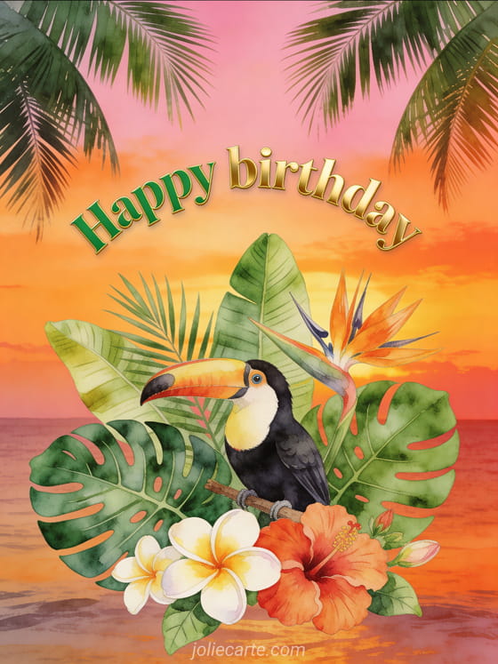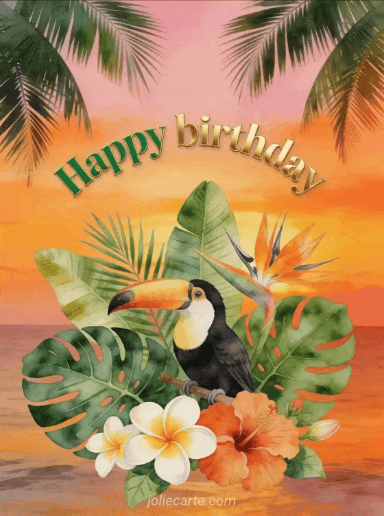 Share this stunning animated happy birthday card inspired by a lush tropical garden. Discover also free animated birthday greeting cards or a free animated birthday card.