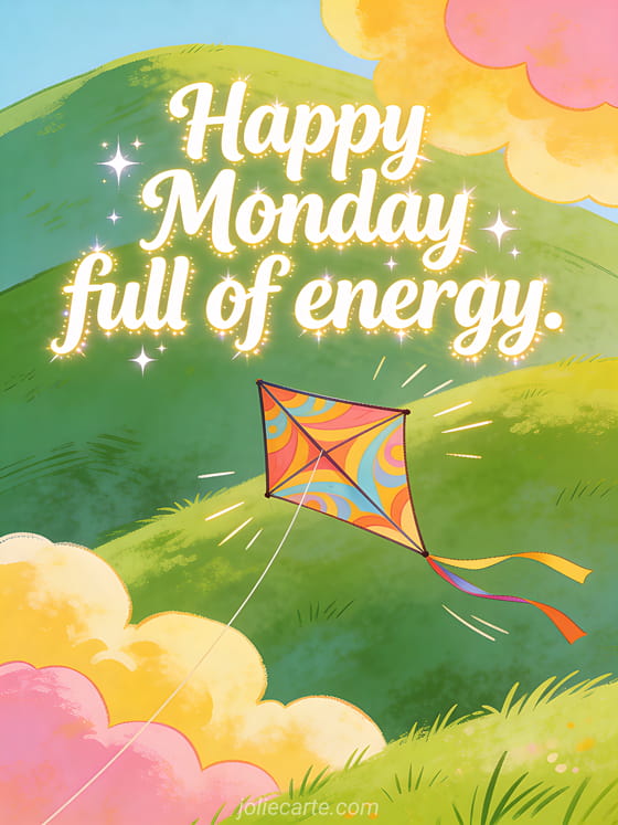 Happy Monday full of energy. an uplifting Monday greeting with a flying kite