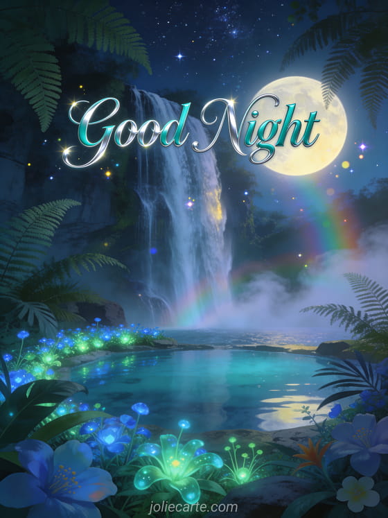 Good night a beautiful and magical good night card with a breathtaking moonlit tropical scene