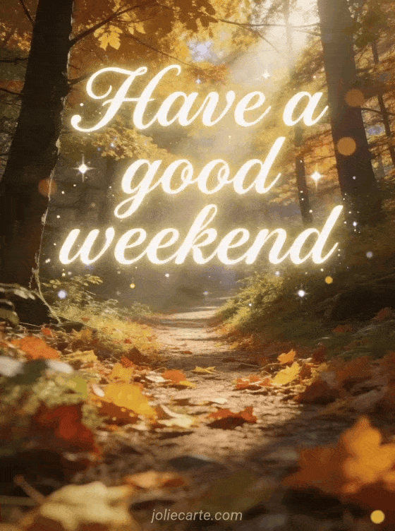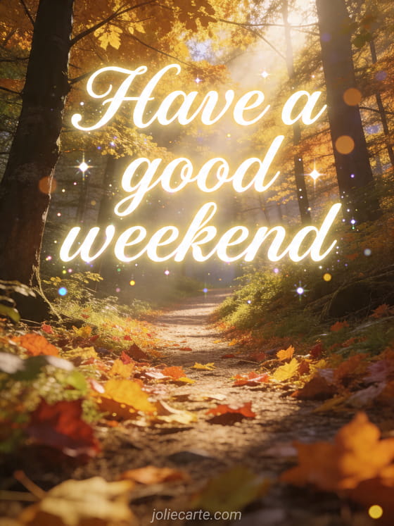 Have a good weekend a peaceful weekend wish along an enchanted autumn forest path