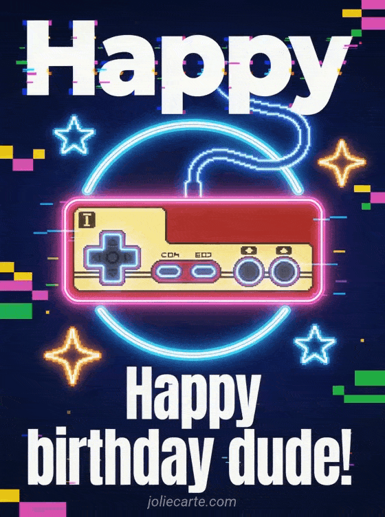 Send this cool gaming birthday greeting to celebrate a gamer's special day with neon style. Discover also a teen boy birthday card or a happy birthday for a teen girl or a teen birthday message.