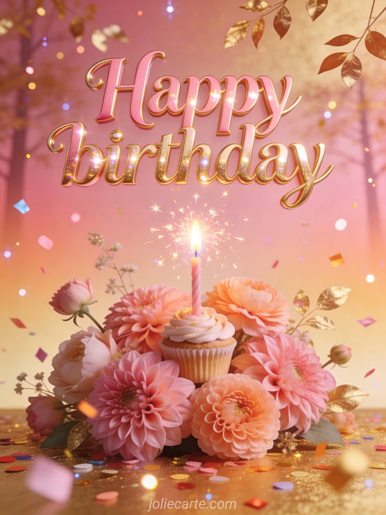 Celebrate with this birthday card woman animated free musical inspired design, filled with pink dahlias, peach ranunculus, floating confetti, golden leaves, and a sparkling cupcake candle. You can also discover funny woman birthday card animated, funny happy birthday woman, and happy birthday woman.