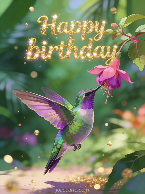 Happy birthday a delicate birthday greeting with a sparkling hummingbird