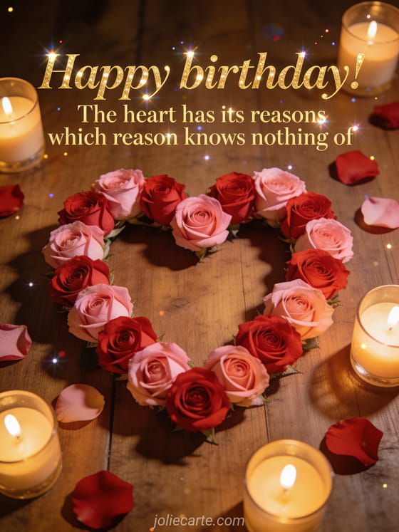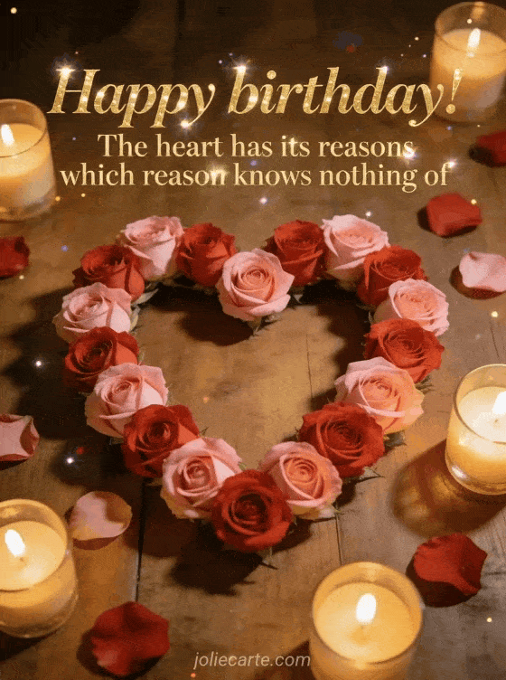 Happy birthday! The heart has its reasons which reason knows nothing of a tender and intimate birthday message