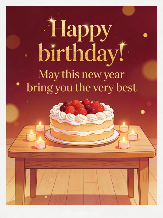 Send a heartfelt birthday message with an elegant card featuring cake, red fruits, and soft candle glow in warm tones. Discover also birthday message sms, send a birthday message, and happy birthday message.