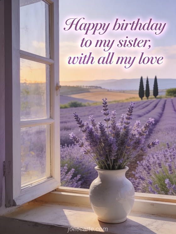 birthday of a sister A loving birthday message for your sister with lavender and warm light.