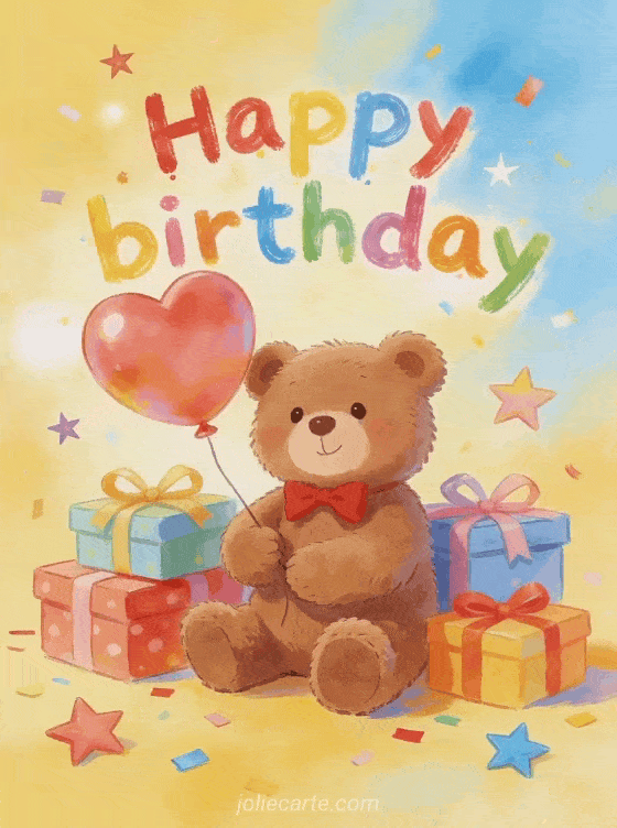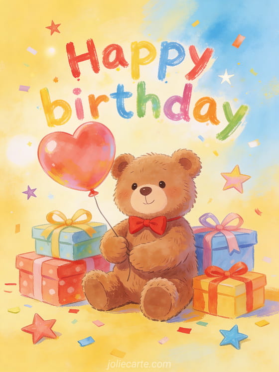 Free birthday card with teddy bear and gifts
