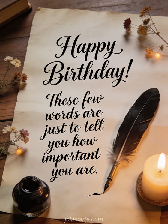 Send beautiful birthday words with a warm and intimate illustration. Discover also a short birthday note card or a touching birthday message for best friend.