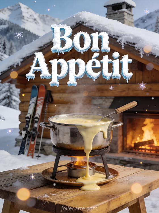 Send this warm ski bon appétit wish and make every mountain meal special. Discover also a bon appétit card or a bon appétit message card.
