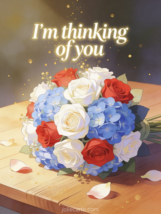 Share this gorgeous flower bouquet card with the message "I'm thinking of you" and make someone feel special. Discover also a tonight I'm thinking of you card or thinking of you animated images.