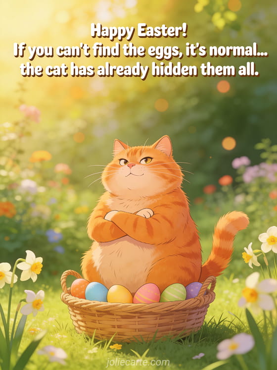 Share this hilarious cat Easter humor card and bring some laughter to the holiday. Discover also an Easter egg humor card or a funny Easter humor card.