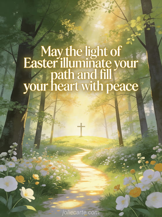 Share this moving Christian Easter message wishing light on your path and peace in your heart. Discover also a happy Christian Easter card, a beautiful religious Easter card or a Catholic Easter image.