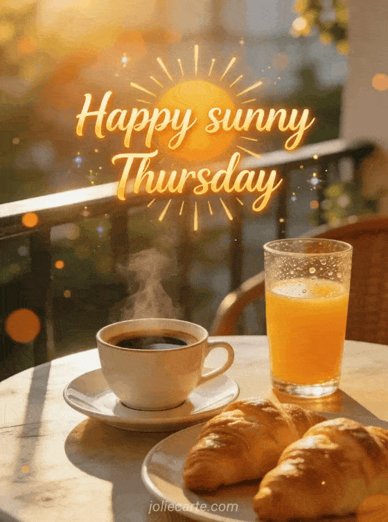 Happy sunny Thursday a warm Thursday greeting with a perfect breakfast mood