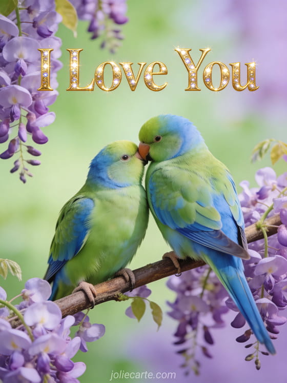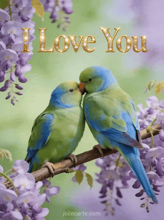 Send this charming gif card with two lovebirds to express your love. Discover also an I love you gif or an I love you image.