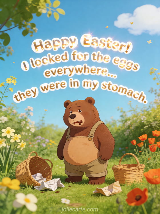 Celebrate with this beautiful animated card. Send this Happy Easter! I looked for the eggs everywhere... they were in my stomach. message to your loved ones for free. Discover also funny Easter or funny Easter.