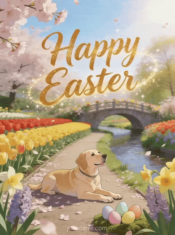Easter gif a joyful Easter gif with a charming Keukenhof garden scene