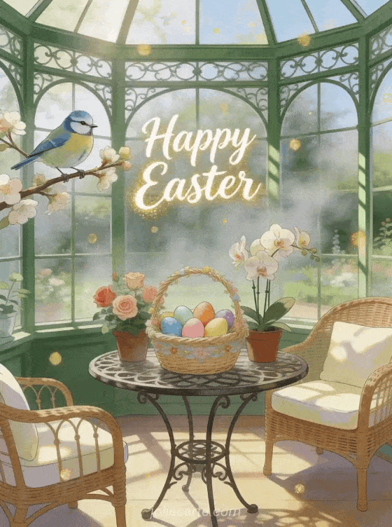 Discover these joyful Easter gifs with spring flowers and a charming blue tit. Discover also animated Happy Easter images or free virtual Easter cards.