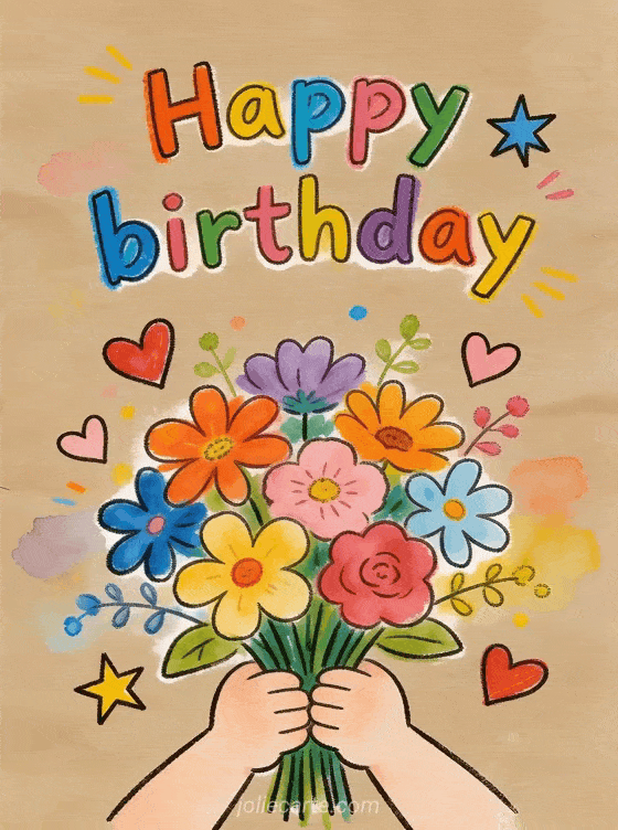 Send a warm birthday greeting with a handmade feel, colorful flowers, and a gentle message for mom. You can also discover a happy birthday to one's mom card, a happy birthday to a wonderful mom card, or an animated happy birthday mom card.