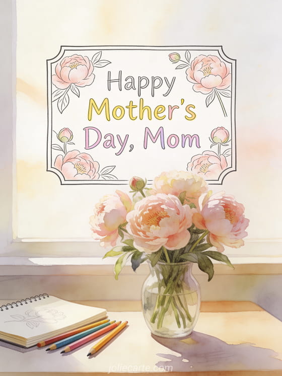 Choose this easy drawing style Mother's Day card to send a warm and creative message. Discover also happy mother's day to all moms, card for mother day, and happy mother's day image.