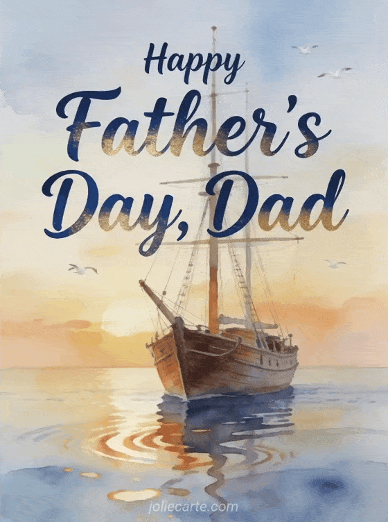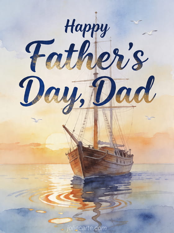 Send a tender Father's Day card with a delicate watercolor sailboat on a calm sunset sea. This free greeting brings a peaceful, heartfelt touch to Dad's special day.