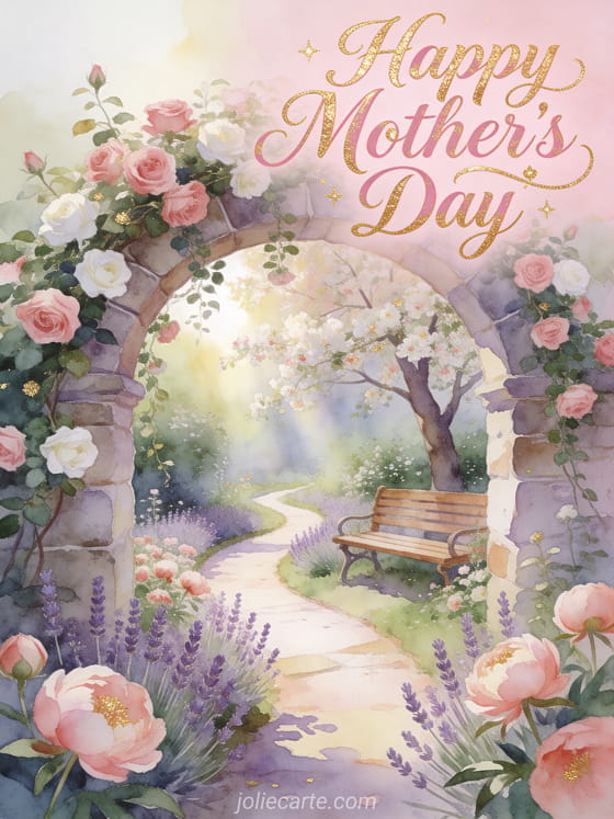 Celebrate Mother's Day with a poetic watercolor garden full of charm and tenderness. You can also discover write a poem for mother's day, free personalized mother's day card and mother's day quote.