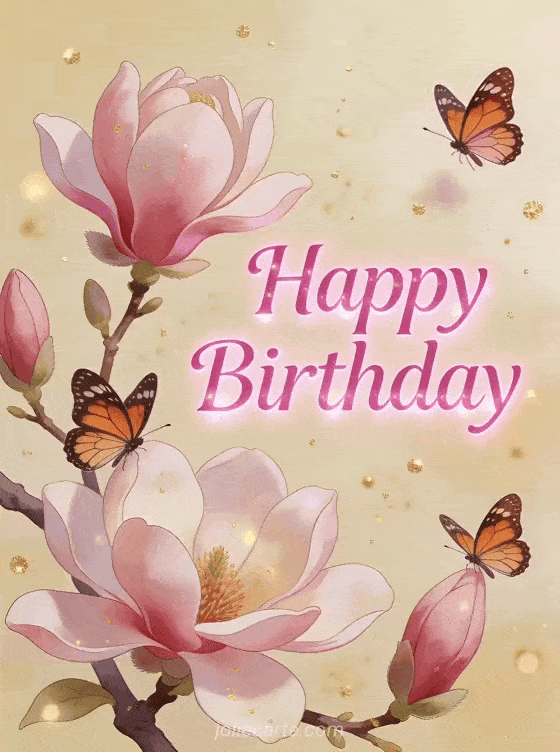 Free birthday gif for women a delicate birthday card with butterflies and magnolia flowers